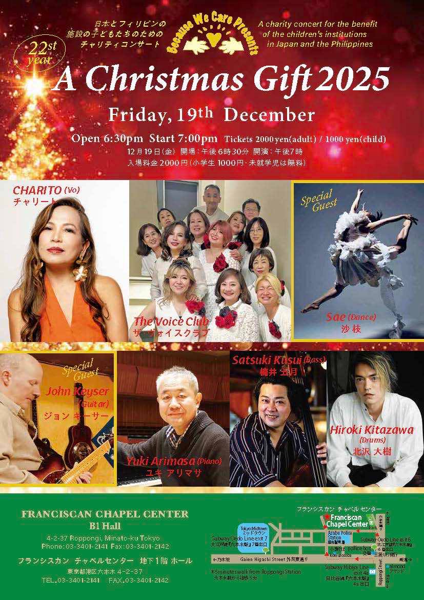 The Transitus of St. Francis of Assisi アッシジの聖フランチェスコの巡礼. To mark the Feast of St. Francis and the 80th anniversary of the end of World War 2, the FCC is organizing a concert on Friday, October 3, from 1830 to 2100
